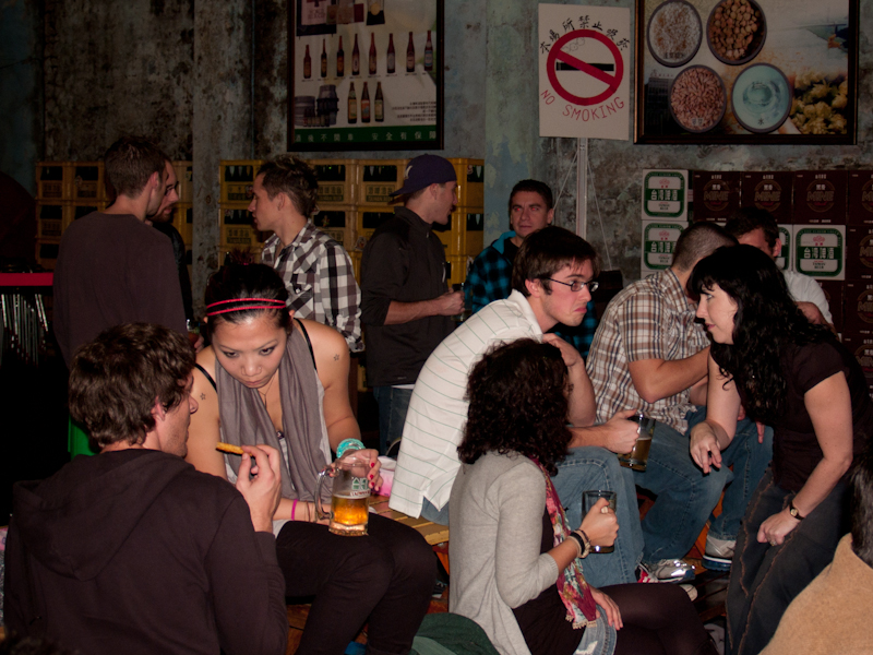 The beer house was packed with Taiwanase people drinking, singing and dancing on tables, waving glow sticks which were thrown into the crowd by the lead singers. The band were great, perhaps a little loud, but nevertheless very entertaining. To give you an idea of the set list, we had Abba followed by Eminem! Certainly an ecclectic mix! We found ourselves as spectators, watching both the band and the audience. At one point, a whole table of Taiwanese part-goers got up onto the stage to join in with an obviously very popular Taiwanese song. There really was a fantastic infectious party atmosphere which fuelled our need to continue the celebrations following the closing of the bar.